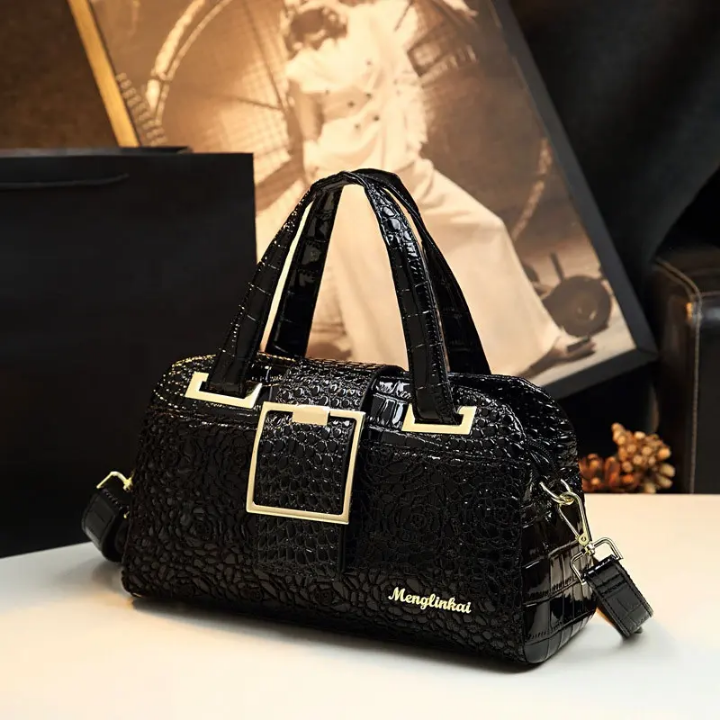 02 Crocodile Leather Bag. (Black Color)