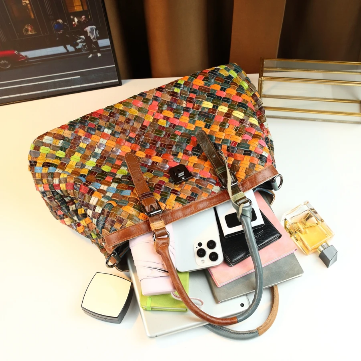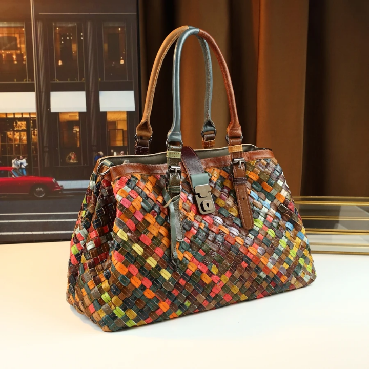 Vintage Custom Cowhide Genuine Leather Multicolor Handbag.